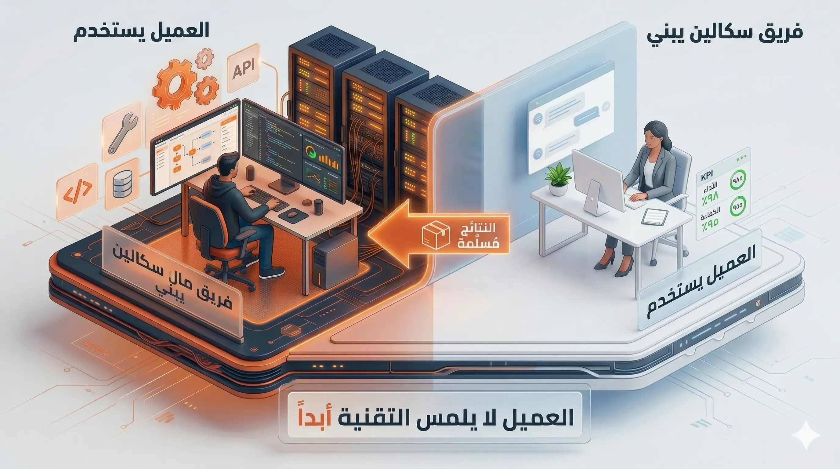 يقوم فريقنا بالضبط والنشر والصيانة. أنت تستخدم، نحن نشغّل.